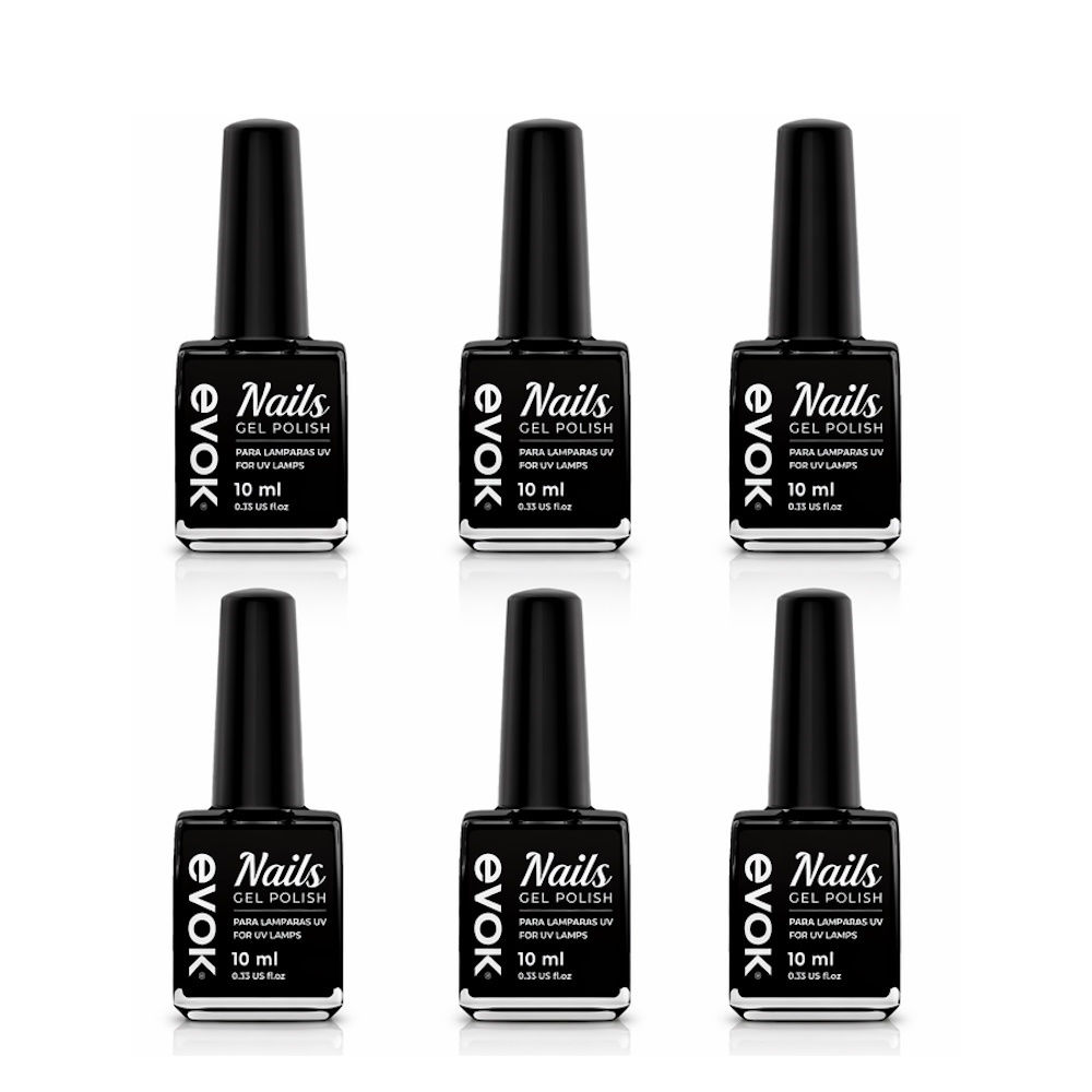 El esmalte de gel EVOK está diseñado para ser utilizado con una lámpara UV de 48w o más para lograr un secado y curado adecuados. Los 6 tonos son los presentados en las fotos.