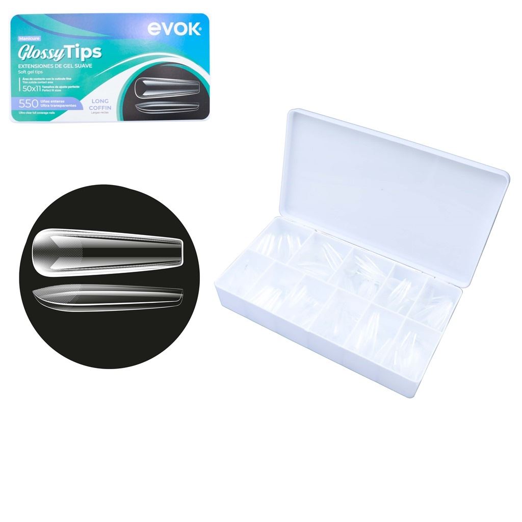 • Tips de Gel Soft 550 unidades Evok Coffin Largo